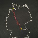 Dafür wurde der Umriss von Deutschland, der Name, das Jahr, Start- und Zielort in weiß geplottet. Die Route in rot, inkl. der in etwa zurückzulegenden Kilometer.